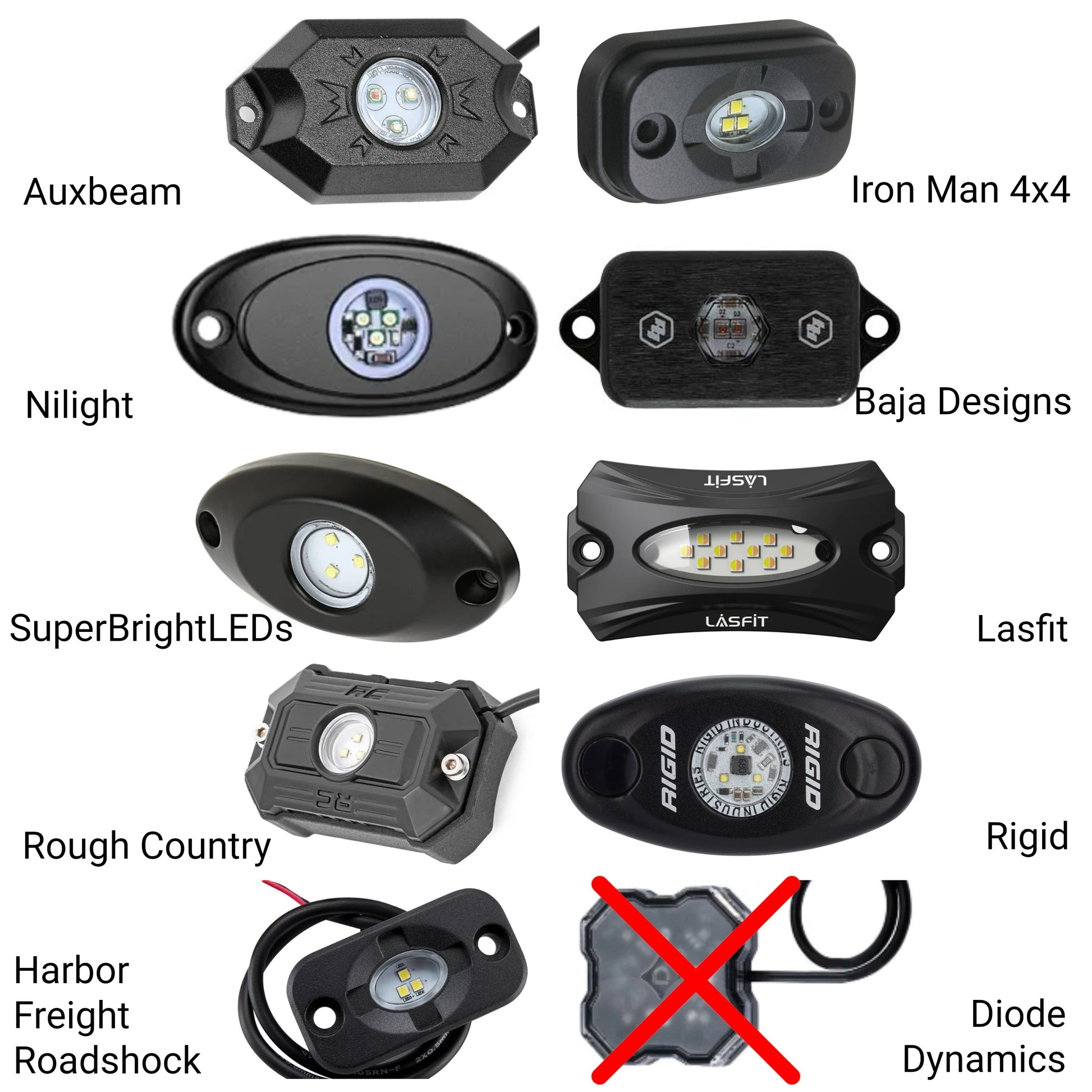 One of the first mods most Toyota 4x4 SUV owners do is remove the side steps/running boards for clearance. These stainless steel brackets bolt to the factory site step locations and are designed to fit most rectangular two bolt rock lights (see fitment guide in photos)